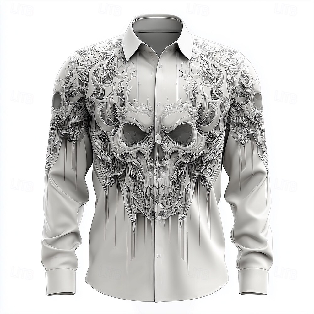A dark fusion of life and death. The Nocturne Bloom Skull Shirt blends haunting skull imagery with intricate gothic florals for a bold, high-fashion look. Designed for those who walk the line between elegance and edge, this shirt turns any outfit into a statement.