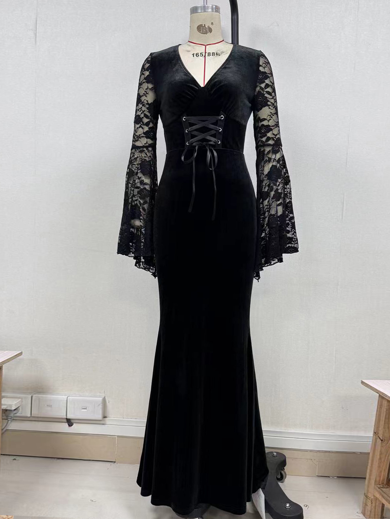 Step into the night with the Nocturne Lace Velvet Gown - a statement piece made for dark souls and bold hearts.
