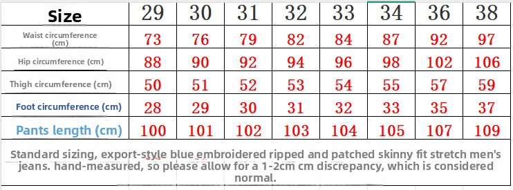 Sizes: 28, 29, 30, 31, 32, 33, 34, 36, 38