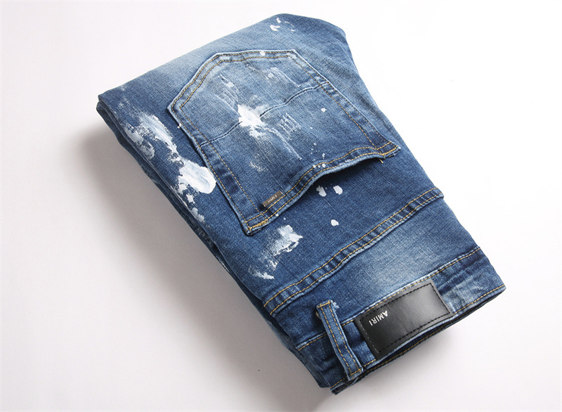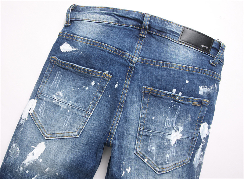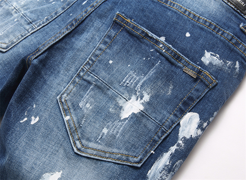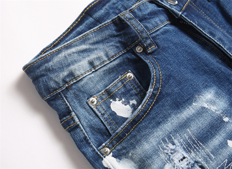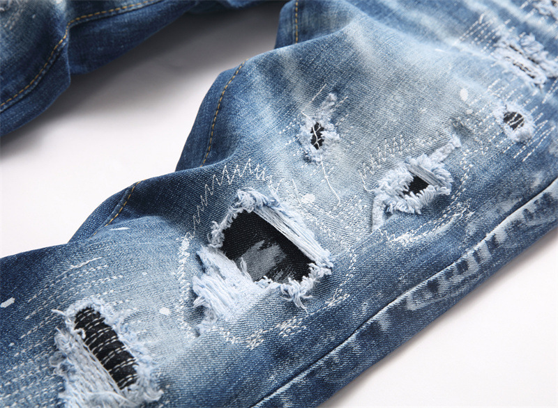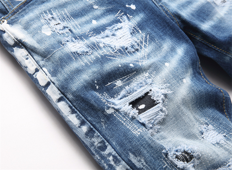 Ripped Design: Distressed details with holes and splatter paint effects for edgy style